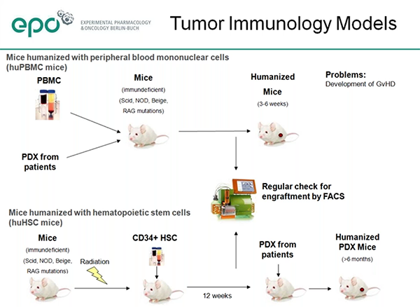 Dr. Jens Hoffmann of EPO presented a webinar highlighting new data on preclinical immuno-oncology research using humanized models. The growth in immuno-oncology (IO) research has created a need for more relevant models. The IO field includes many types of drugs, including: - genetically engineered immune cells such as CAR-T cells