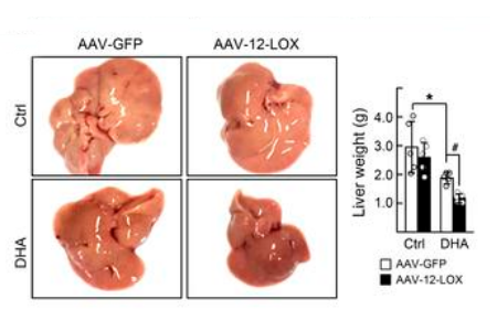 The authors next assessed whether this downstream target of RORα, 12-LOX, could alter the protective effect of DHA administration on an HFD MASH model1. A known inhibitor of 12-LOX (baicalein) abolished the beneficial effects of DHA administration on MASH progression with both hepatic Mar1 levels and M2 macrophages decreasing with coadministration of the inhibitor and DHA.