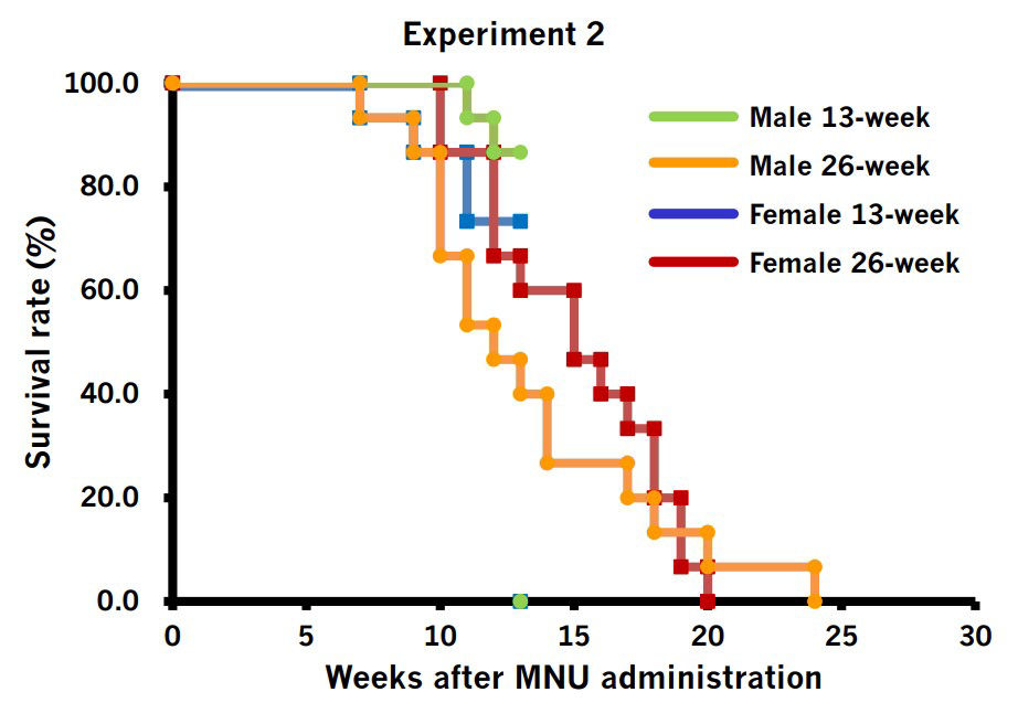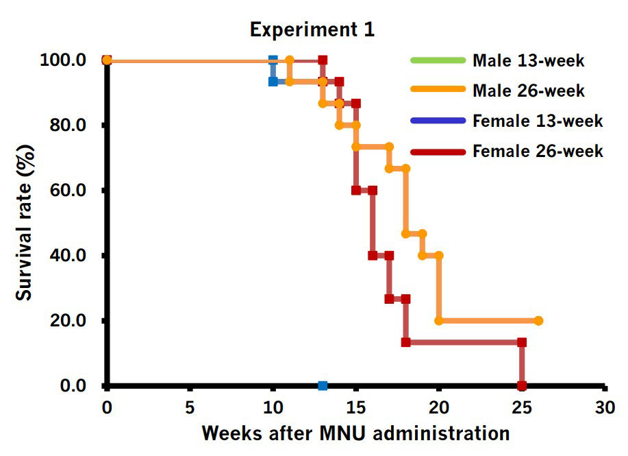 Observation period: necropsies were performed either at 13th or 26th week after the MNU administration.