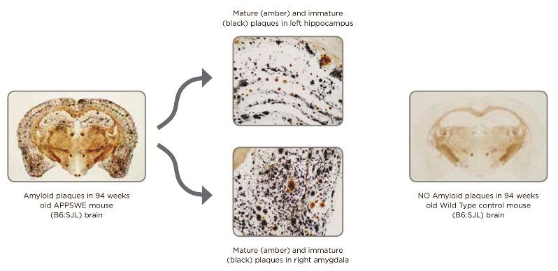 View a timeline of neuropathology of these mouse models as well as amyloid plaque development in the APPSWE mouse brain.