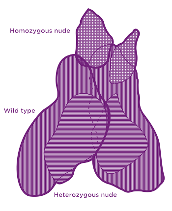 Researchers who use nude mice or rats may be tempted to use heterozygous nudes as sentinels. Resist! Female nudes are poor breeders; because of this nudes are usually produced by mating heterozygous females with homozygous males. The resulting litter includes both heterozygous and homozygous offspring. As only the homozygous pups are athymic and lack T cells and hair, this produces an equal quantity of offspring that are not useable for xenograft studies.Heterozygous Nudes Make Poor Sentinels