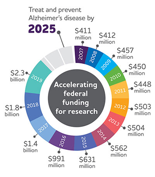 Figure 1: US funding for AD research has continued to grow from just over $400m