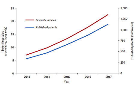 Figure 1: Over the past five years, the scientific output in the microbiome