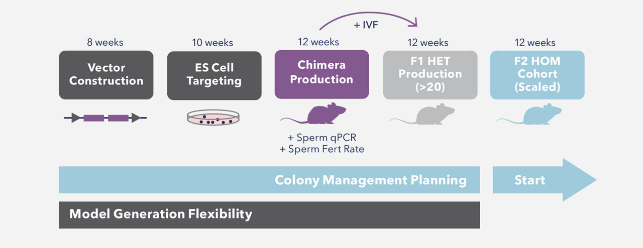 As your project moves through the model generation process, your Colony Management Scientific Program Manager will initiate a conversation on colony expansion and cohort goals, proactively planning such that the model generation deliverable is sized appropriately for your downstream goals. We understand that early in the process you may not fully know the extent of your colony expansion goals, but we can guide you to the best solution to meet your unique needs. For example, utilizing our ExpressMODEL® service offerings to scale up and provide study ready cohorts directly out of model generation  if timeline to initial cohort is your top priority.