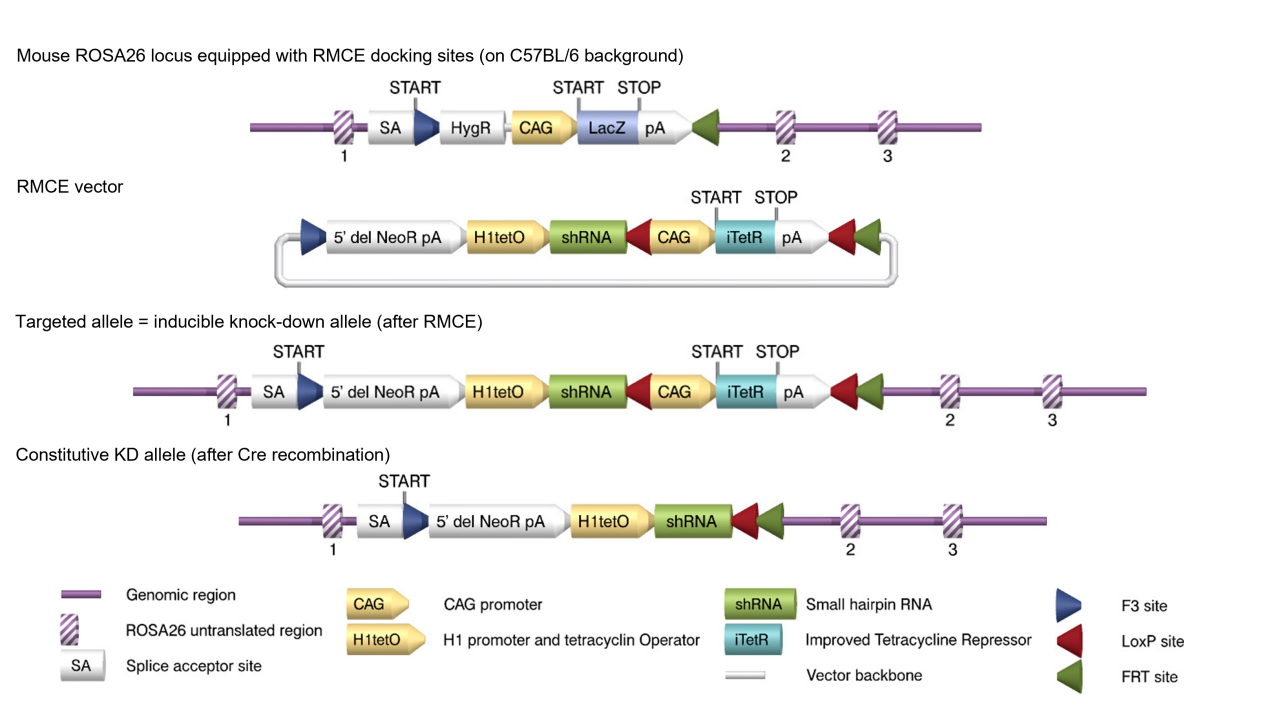 Gene knockdown models are useful when a reduction in gene expression is desirable rather than permanent knockout of the gene of interest. Gene knockdowns are frequently used when working with essential genes that cannot be feasibly targeted at the gene level, for validating targets for therapeutics, mimicking the action of therapeutics or gene dosage studies. For most applications, the knockdown needs to be inducible and reversible or restricted to specific cell types or tissues.